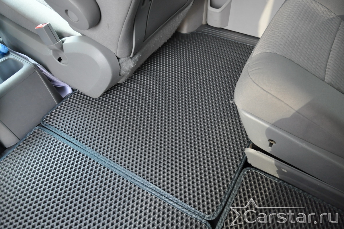 Автомобильные коврики EVA Dodge Grand Caravan V (2007-2020) 2 ряд: кресла 1+1 не убираются в пол – это долговечные, удобные и универсальные аксессуары, которые помогут надежно защитить салон и багажник вашего авто от пыли, грязи и влаги в любое время года.