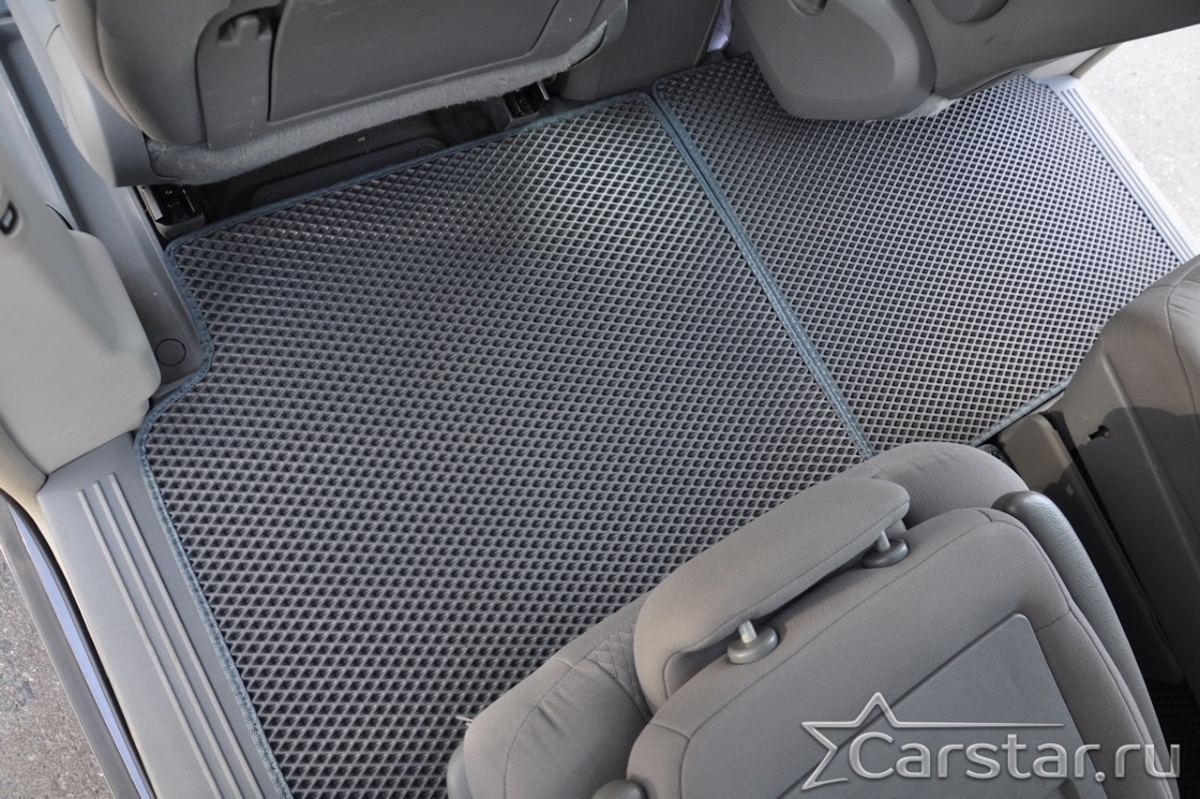 Толщина ковриков EVA составляет 10-12 мм. Глубина ячеек 7-8 мм. Такая толщина ковриков позволяет им служить довольно долго, не протираясь до 3 лет. А благодаря такой глубине ячеек коврик EVA площадью 1 кв.м. способен захватить около 3,5 л жидкости, сохраняя в чистоте вашу обувь и обивку салона.